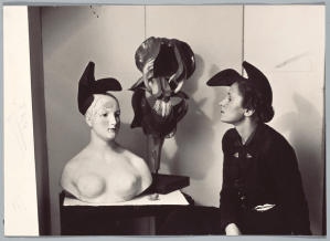André Caillet. Gala portant el barret-sabata d’Elsa Schiaparelli inspirat en un disseny de Salvador Dalí, 1938. André Caillet. Paris.